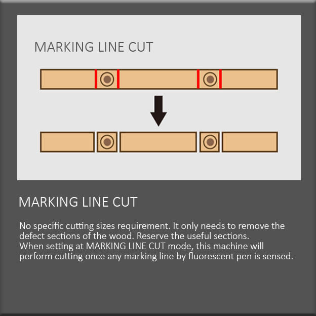 | Note1* – Sawblade elevation provides two type for option : Air cylinder or Servo motor. – When the wood thickness is 50mm, the constant cutting length is 50mm. |
