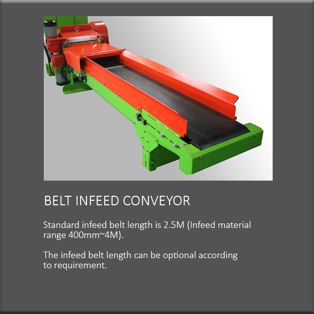 | Infeed belt | 2.5 M is standard. Other sizes can be optional |
